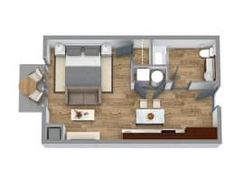 Studio, 1 bath, 510 sqft