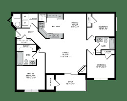 2 beds, 2 baths, 1,164 sqft