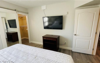 Discover the epitome of modern living in this amazing, fully upgraded unit. Step into a world of luxury as you enter the spacious living room and dining area, seamlessly connected to a gourmet kitchen adorned with sleek granite counters and top-of-the-line stainless steel appliances. The elegance of upgraded planking flooring throughout adds a touch of sophistication to every corner. Sunlight filters through plantation shutters, gracing the windows and creating an ambiance of tranquility. The master bedroom exudes style with a mirrored sliding barn door, combining functionality with aesthetics in a unique and tasteful manner. Situated in a prime location just off the 215 and Rainbow, convenience is at your doorstep. Whether you're seeking easy access to the city's heartbeat or a quick escape to the outdoors, this unit offers the best of both worlds. Indulge in the delight of a space that not only boasts lavish upgrades but also embraces a practical and well-thought-out design