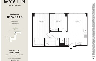 Designer Two Bedroom with striking Manhattan Skyline and East River Views. Welcome to DWTN - an iconic new address reshaping the skyline of Downtown Brooklyn. Poised with quiet confidence above the borough's vibrant core, these striking dual 34-story towers are a bold architectural statement, masterfully envisioned by the acclaimed Aufgang Architects. Within, internationally renowned Chris Shao Studio brings a sophisticated design sensibility to every detail, offering a collection of impeccably curated studio, one-, and two-bedroom residences - many boasting sweeping views of the Manhattan skyline and the dynamic energy of Downtown Brooklyn. At DWTN, refined urban living is elevated to an art form. Each residence features thoughtfully considered layouts and finely tailored interiors, creating a serene canvas where form meets function and elegance meets everyday comfort. Residences are outfitted with: * In-home washer and dryer * Complimentary roller shades * Individually controlled climate systems * Select homes include private patios or terraces More than a place to live, DWTN redefines city life through a lifestyle grounded in balance, wellness, and connection. With over 50,000 square feet of hotel-inspired indoor and outdoor amenities - from a rooftop Sky Club and landscaped terraces to wellness spaces and lounges - DWTN invites residents into a curated environment where moments of retreat, inspiration, and community seamlessly intertwine. Amenities include: ** Outdoor Amenity Highlights:** * Lobby Courtyard * Two Top-of-House Landscaped Rooftop Terraces with Spectacular Views of Manhattan, the East River, Brooklyn & Manhattan Bridges and Downtown Brooklyn **** **Indoor Amenity Highlights:** * Lobby Fireplace Lounge * State-of-the-art Fitness Center * Co-Working Lounge * Co-Working Suite * Sunset Lounge * Speakeasy & Gaming Lounge * Media Lounge **** **Additional Building Highlights and Services:** * 24/7 Attended Lobby * On-Site Super & Building Management * Bike Storage * Tenant Storage Additional Fees May Apply Required Fees To Rent This Unit: $20 Application Fee per applicant 1st Month's Rent 1 Month's Security Deposit 20-699.22 Total fee disclosure. a. Every listing related to the rental of residential real property shall disclose in such listing in a clear and conspicuous manner any fee to be paid by the prospective tenant for the rental of such property. b. Prior to the execution of an agreement for the rental of residential real property, the landlord or landlord's agent shall provide to the tenant an itemized written disclosure of any fees that the tenant must pay to the landlord or to any other person at the direction of the landlord in connection with such rental. Such itemized written disclosure shall include a short description of each fee, and the tenant shall sign any such itemized written disclosure prior to signing an agreement for the rental of such residential real property. The landlord or landlord's agent shall retain the signed written disclosure required by this subdivision for 3 years and shall provide a copy of such signed written disclosure to the tenant.