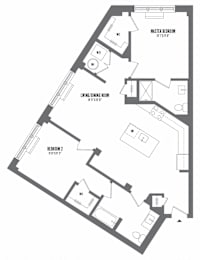 2 beds, 2 baths, 1,119 sqft