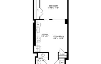 1 bed, 1 bath, 336sqft