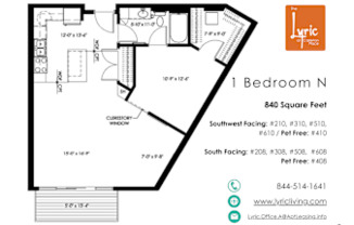 1 bed, 1 bath, 840 sqft
