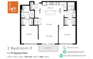 2 beds, 2 baths, 1,119 sqft