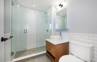 Large alcove studio residence with industrial-chic oversized windows, open island kitchen, great closet space, and an in-unit Bosch, washer & dryer. The custom kitchen features Caesar stone countertops, modern stainless-steel appliance package, full-sized dishwasher, herringbone white ceramic tile backsplash, oil rubbed bronze faucet, Kohler sink and soft-close cabinets. The spa-like bathrooms are outfitted with a deep walnut vanity, Caesar stone backsplash, Moen faucets with Kohler sinks and toilets, and white herringbone ceramic tile walls. Each room has individually controlled digital thermostats and soundproof windows. Amenities offer the utmost in convenience: fully-furnished roof deck with two grilling stations, wet bars, private dining stations, lounge chairs and outdoor shower; resident fitness center; workspace lobby lounge with free WiFi; Butterfly MX Security and Intercom system; green backyard garden; private storage cages, parking garage and bike storage. Pets and guarantors are welcome. Some restrictions apply. Pictures depict typical finishes in the building and might not be of an actual unit. Disclosure of Fees: First month's rent equal to one month's gross rent Security deposit equal to one month's gross rent