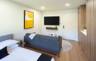 Welcome to Entrada Landing, located in the heart of Canoga Park, CA. Our gated community offers residents a serene oasis with amenities such as a relaxing jacuzzi spa and sparkling swimming pool. With onsite management and courtesy patrol, residents can feel safe and secure in their home. For added convenience, select units offer housekeeping services. Enjoy the convenience of a laundry facility on-site for all your laundry needs. Experience the best of apartment living at 7810 Topanga Canyon Boulevard