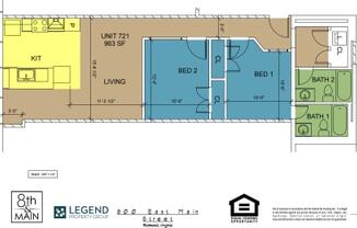 2 beds, 2 baths, 963 sqft