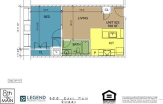 1 bed, 1 bath, 558 sqft