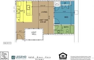 1 bed, 1 bath, 679 sqft