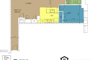 1 bed, 1 bath, 888 sqft