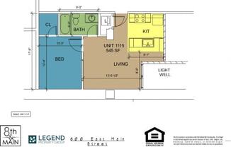 1 bed, 1 bath, 580 sqft