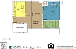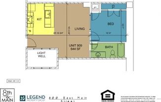 1 bed, 1 bath, 644 sqft