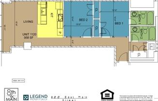 2 beds, 2 baths, 958 sqft
