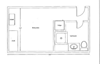 Studio, 1 bath, 245 sqft