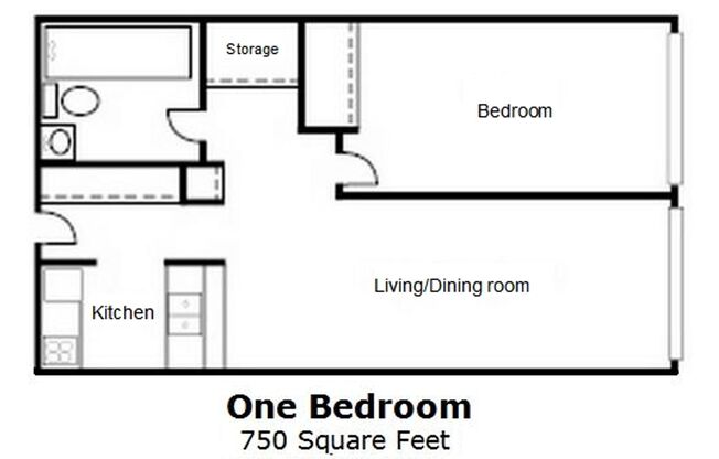 1 bed, 1 bath, 750 sqft