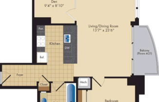 1 bed, 1 bath, 881 sqft
