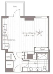 Studio, 1 bath, 524 sqft