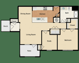 1 bed, 1 bath, 841 sqft