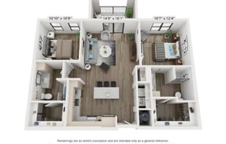2 beds, 2 baths, 1,116 sqft