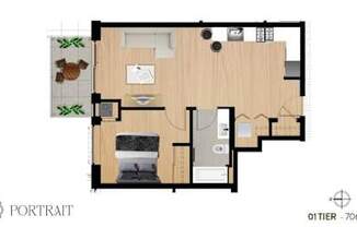 Studio, 1 bath, 593 sqft