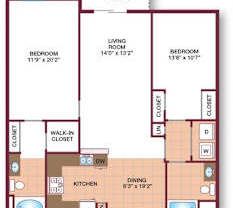 2 beds, 2 baths, 1,192 sqft